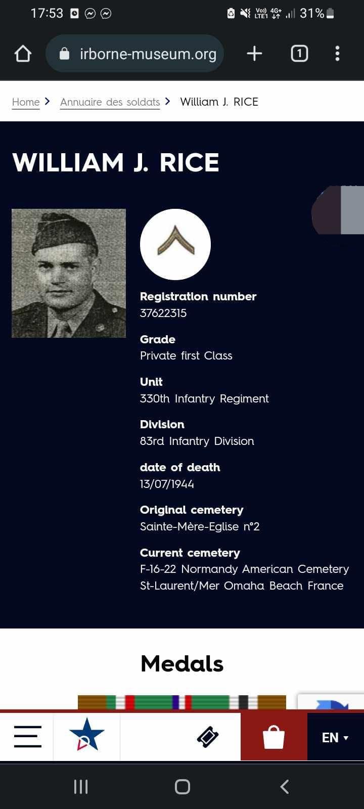 | 1944-07-17 | PFC | Missing in action as of July 11, 1944 | F / 330 | view page | |