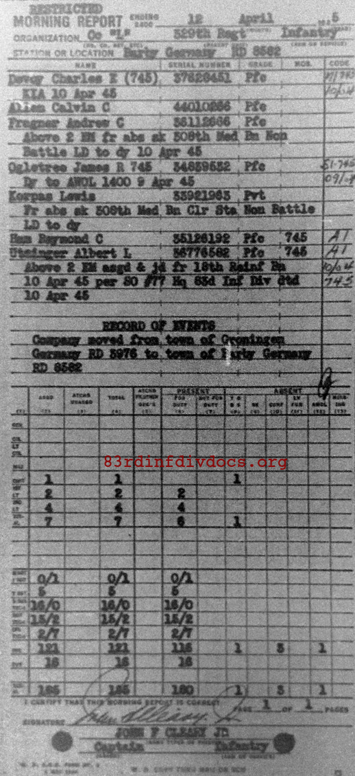 | 1945-04-12 | PFC | Killed in action on April 10, 1945 | 745 | L / 329 | view page |
