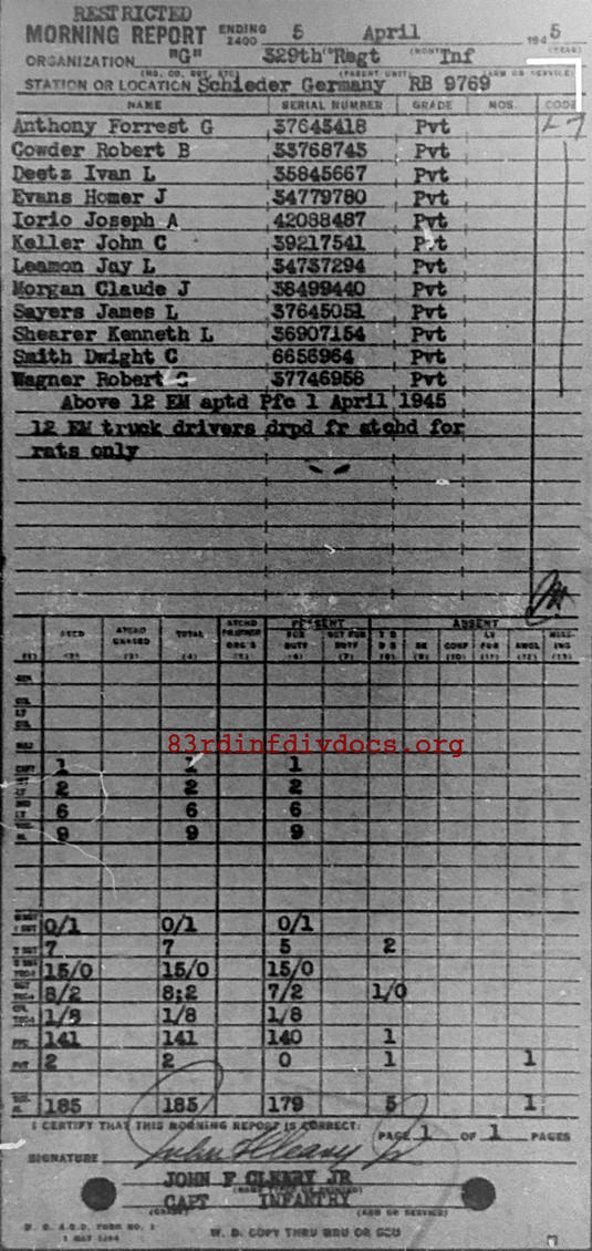 | Unit | 329th Infantry Regiment, 83rd Infantry Division |