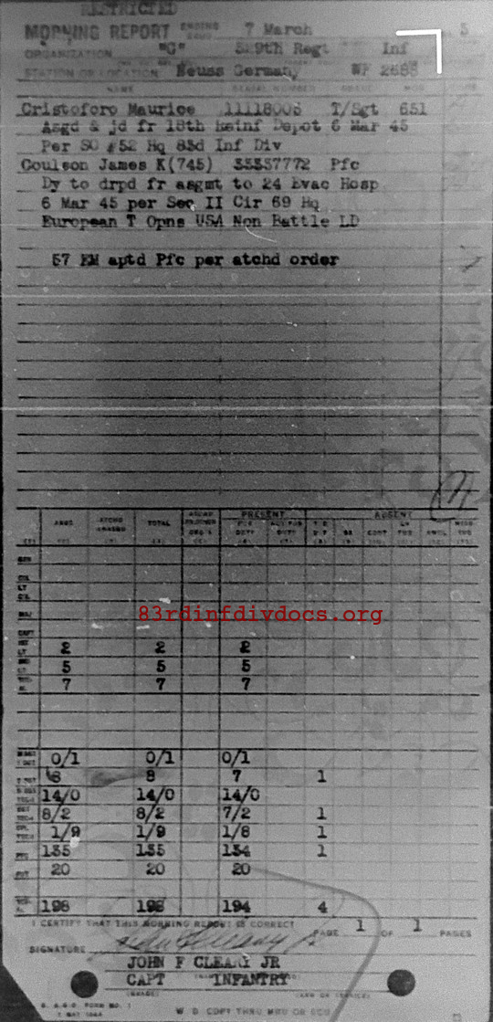 | Unit | 329th Infantry Regiment, 83rd Infantry Division |