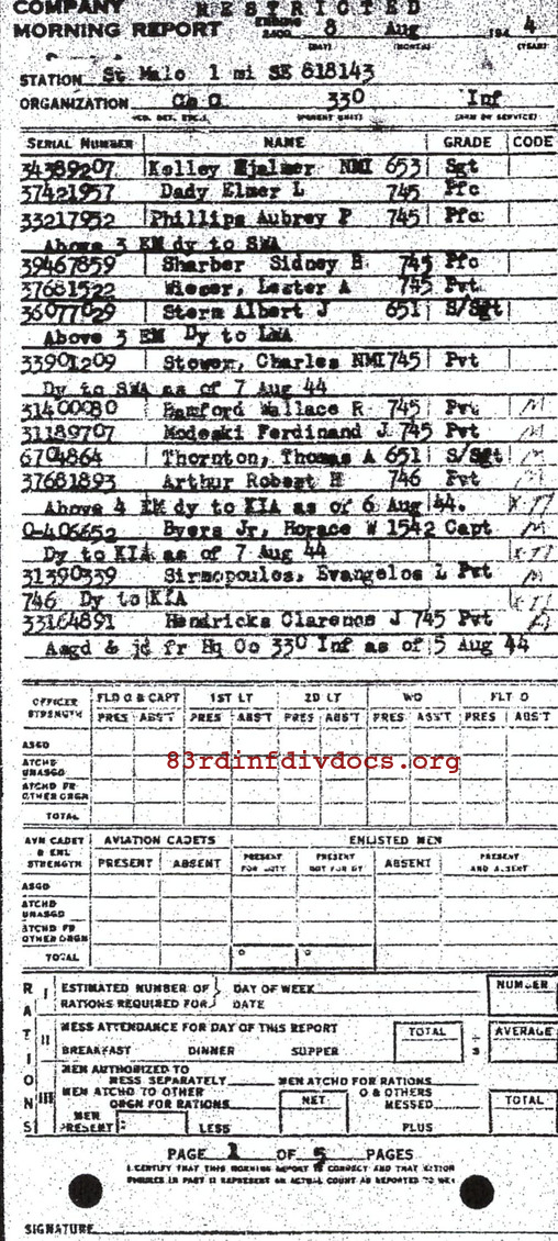 | Unit | C Company, 330th Infantry Regiment, 83rd Infantry Division |