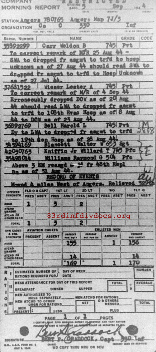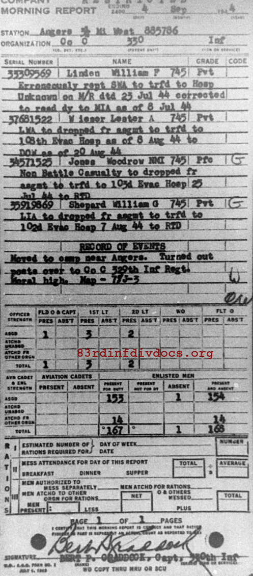 | 1944-09-05 | PVT | Died of wounds on August 23, 1944, which corrects MR of September 4, 1944 | 745 | C / 330 | view page |