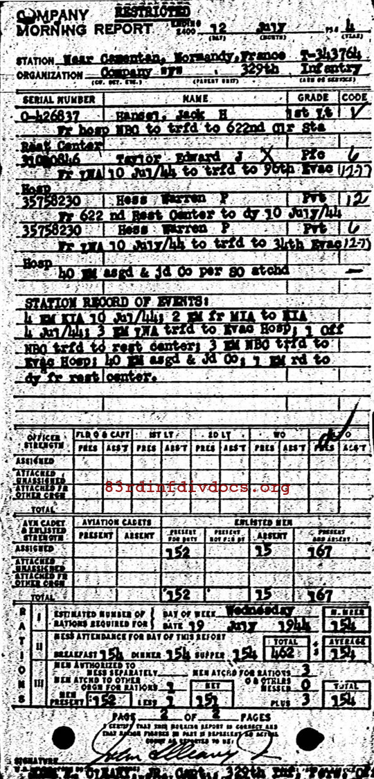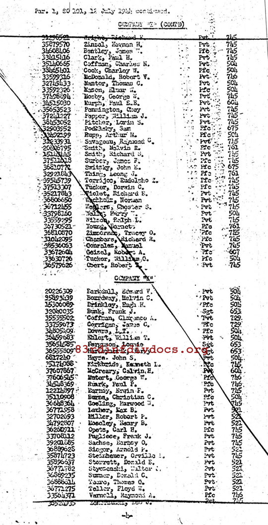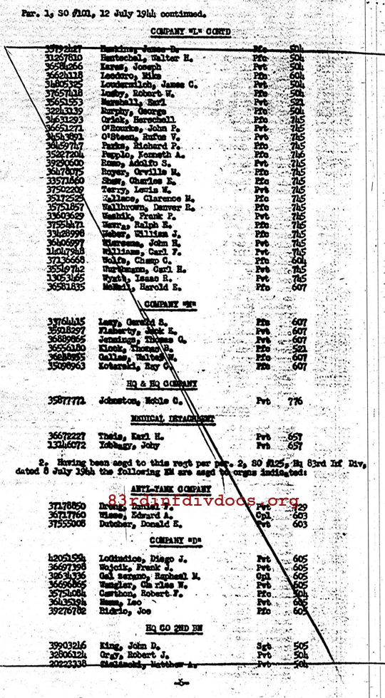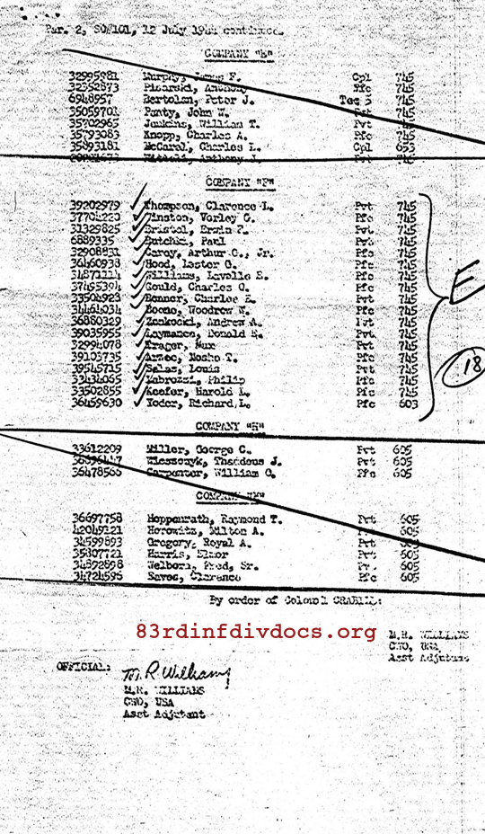 | Unit | F Company, 329th Infantry Regiment, 83rd Infantry Division |