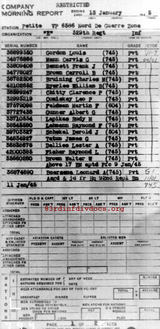 | 1945-01-17 | PFC | Missing in action as of January 11, 1945 | 745 | E / 329 | view page |