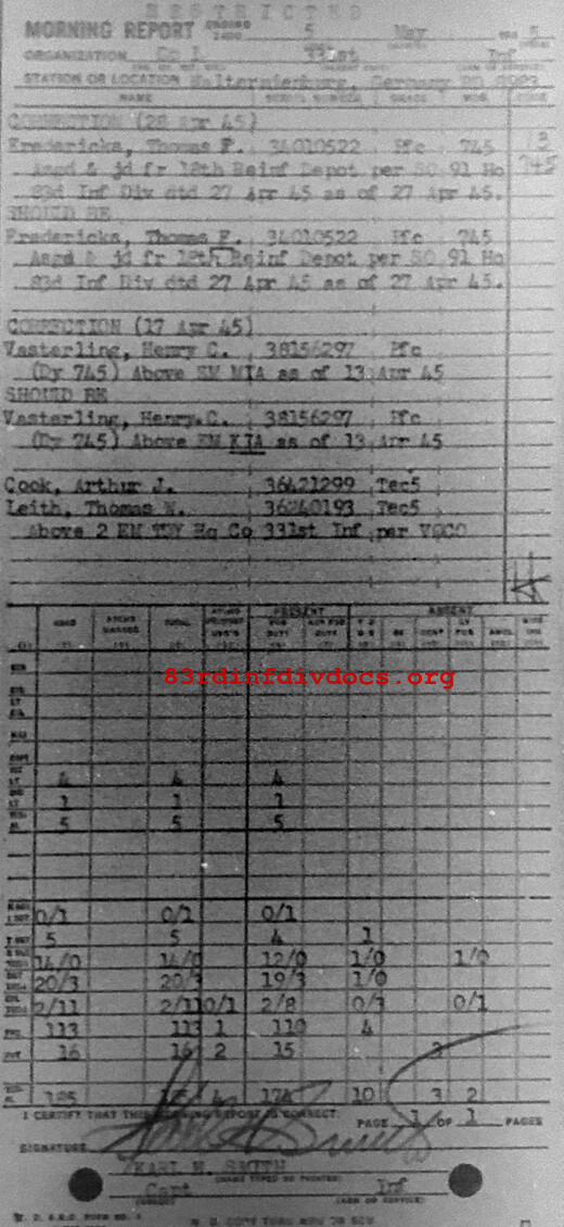 | Unit | 331st Infantry Regiment, 83rd Infantry Division |