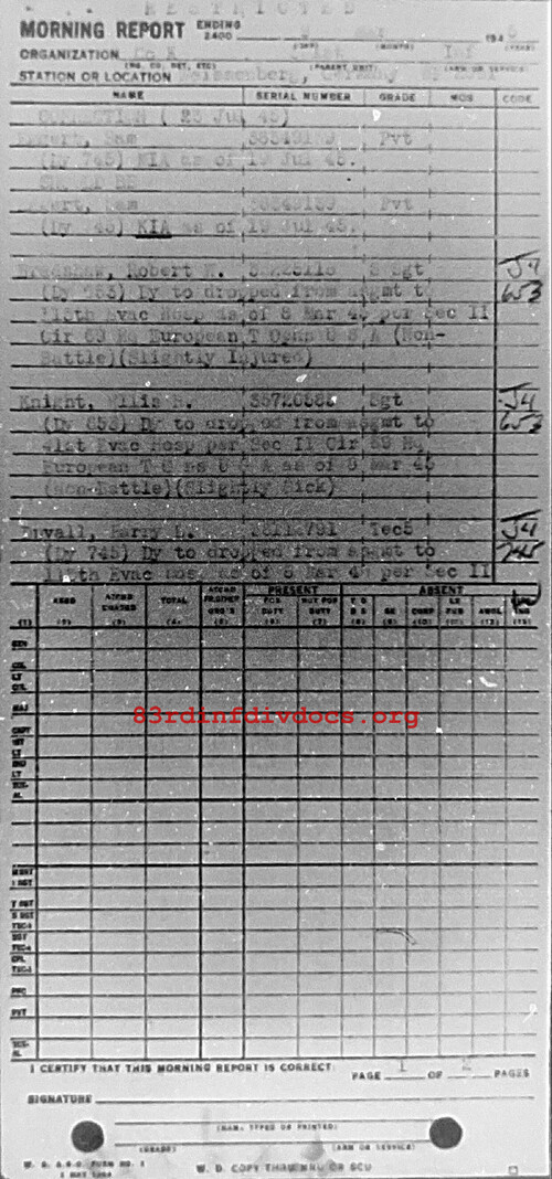 | 1945-03-09 | PVT | Killed in action on July 19, 1945, which corrects MR of July 23, 1945 | 745 | K / 331 | view page |