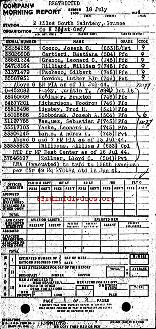 | 1944-07-18 | PFC | Missing in action as of July 13, 1944 | 746 | K / 331 | view page |