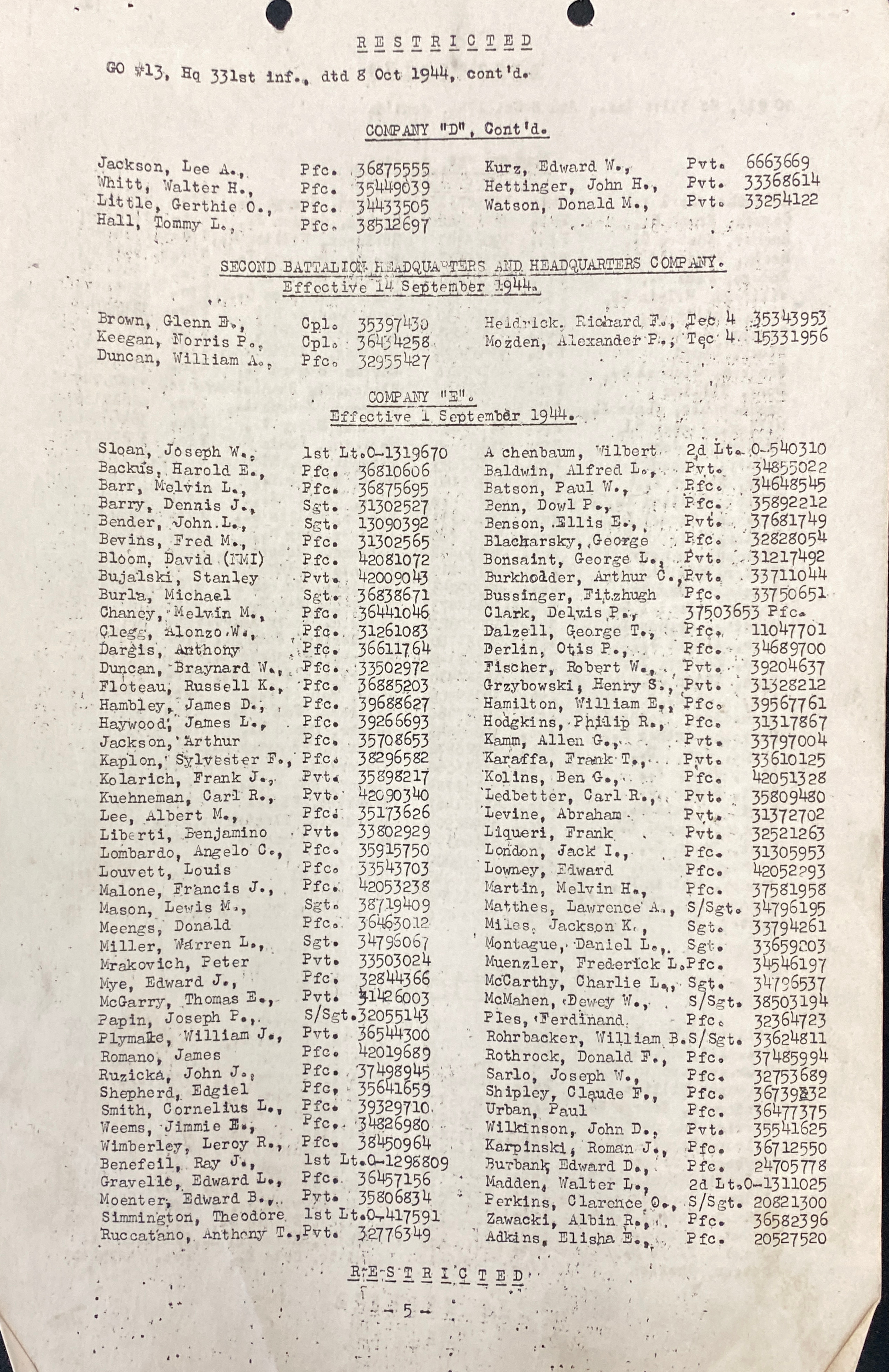 | Unit | E Company, 331st Infantry Regiment, 83rd Infantry Division |