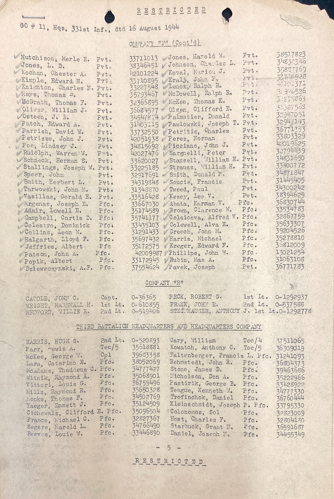 | 331 / 1944 / #11 | PVT |