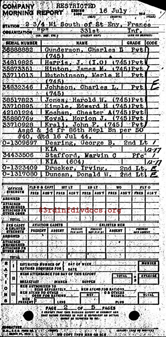 | Unit | 331st Infantry Regiment, 83rd Infantry Division |