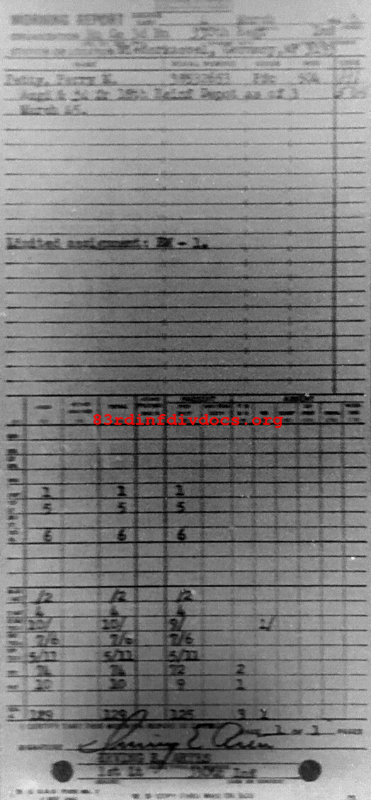 | 1944-07-11 | PVT | Assigned and joined from 92nd Replacement Battalion as of July 8, 1944 | HQCO3BN / 330 | view page | |