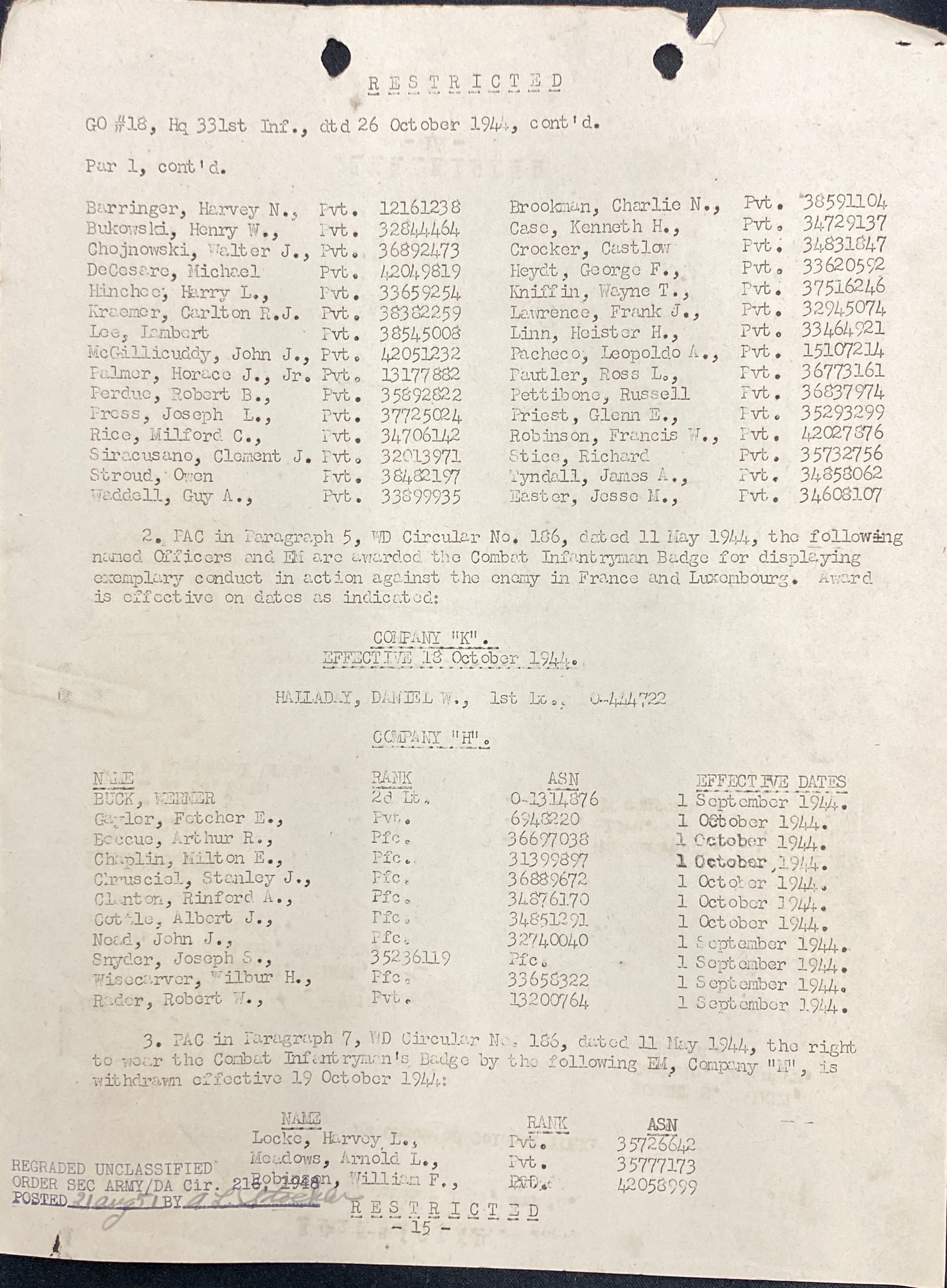 | Unit | C Company, 331st Infantry Regiment, 83rd Infantry Division |