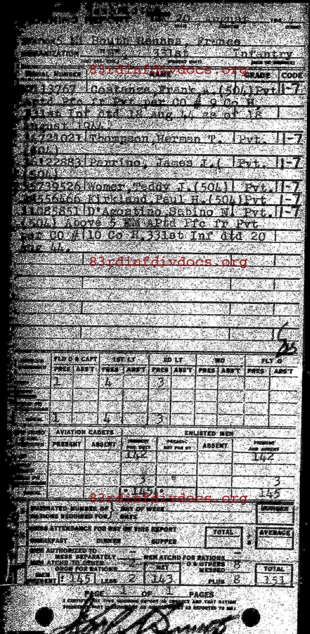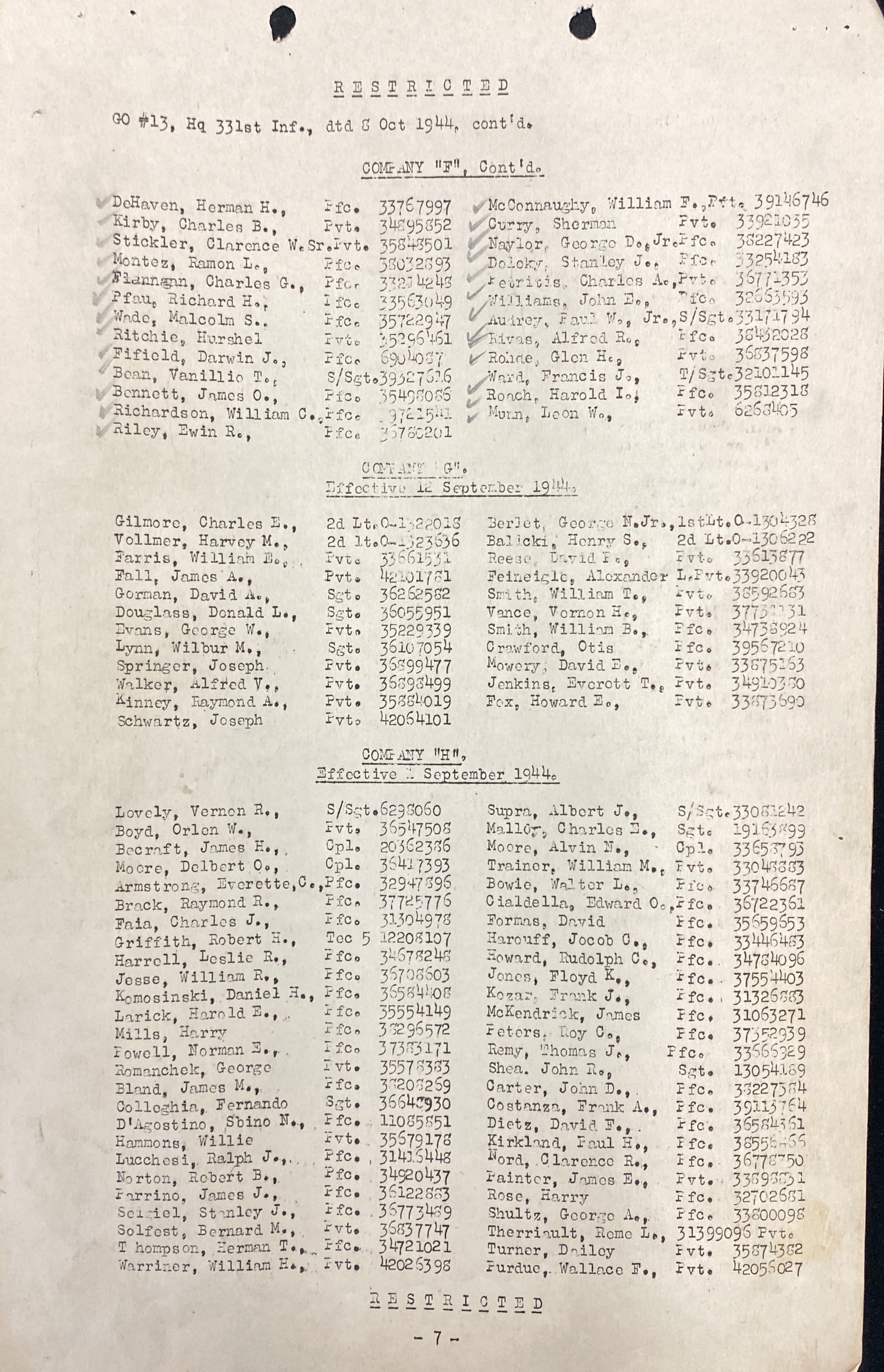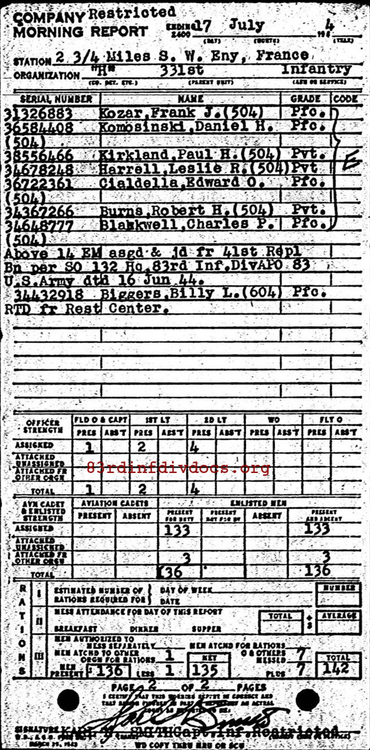 | 1944-07-17 | PVT | Assigned and joined from 41st Replacement Battalion as of July 17, 1944 | 504 | H / 331 | view page |