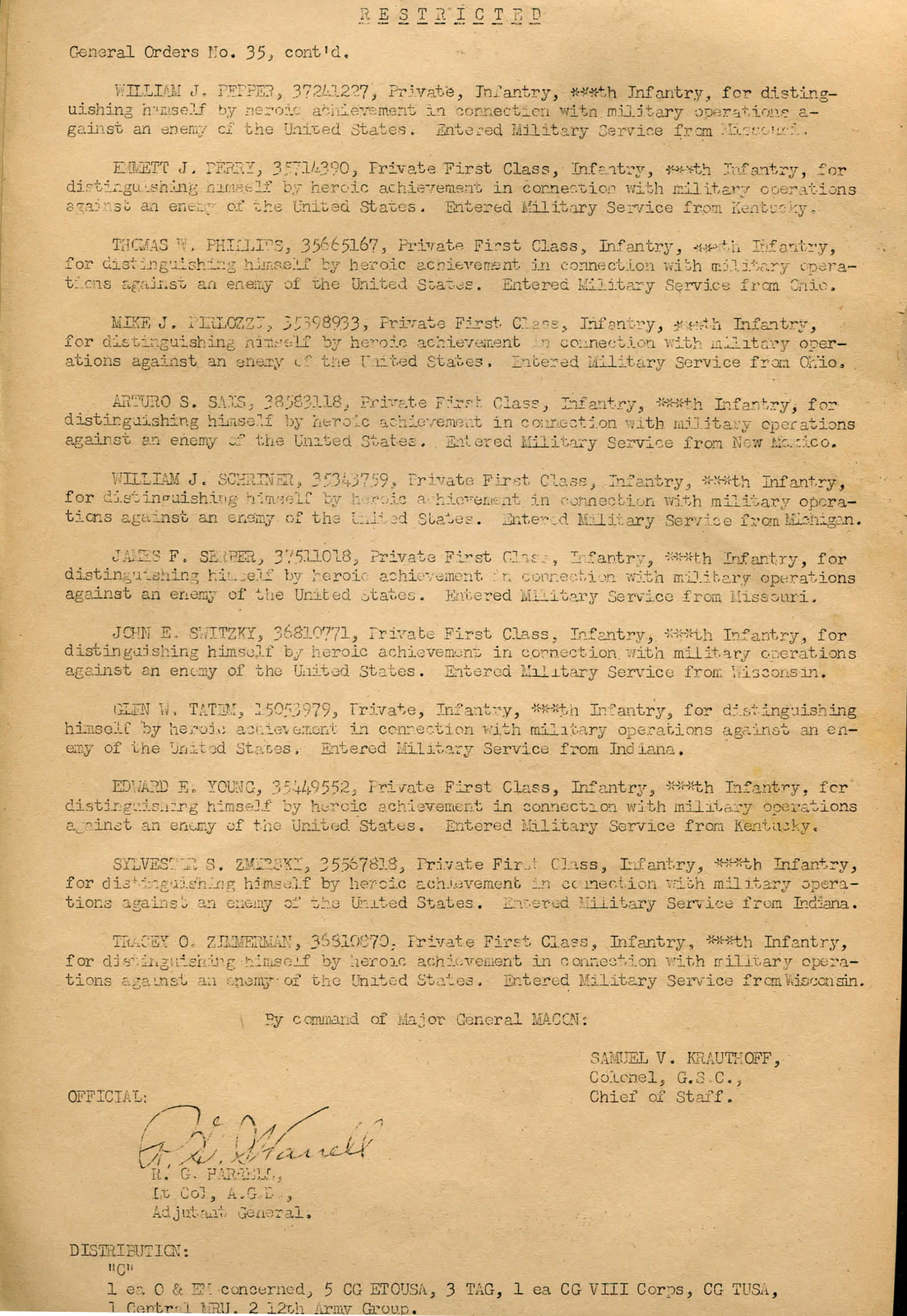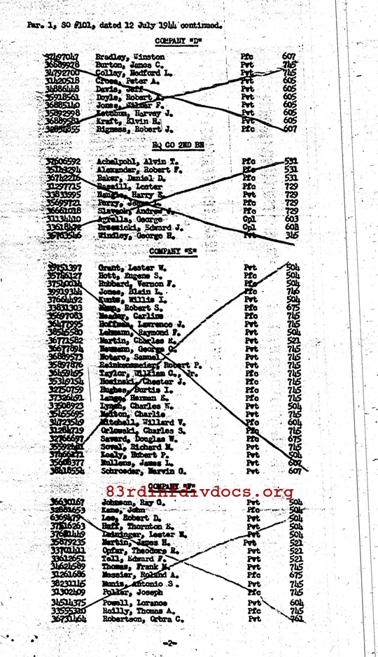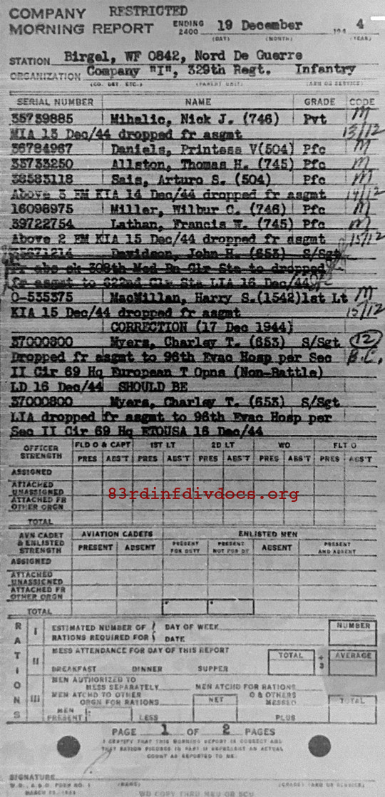 | Unit | I Company, 329th Infantry Regiment, 83rd Infantry Division |