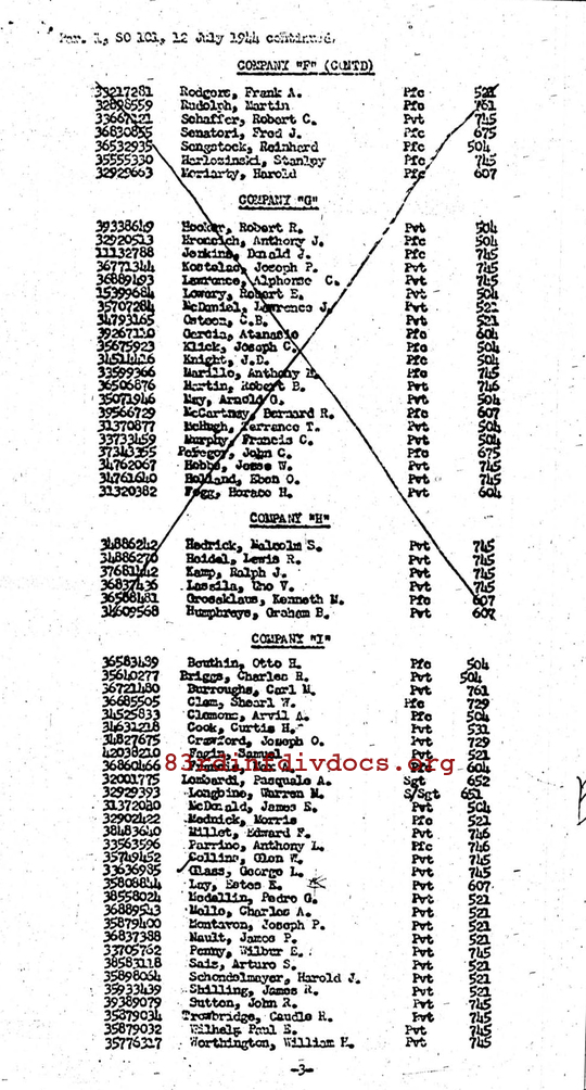 | 1944-12-19 | PFC | Killed in action on December 14, 1944 | 504 | I / 329 | view page |