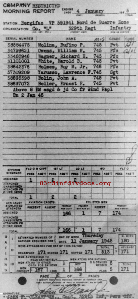 | Unit | 329th Infantry Regiment, 83rd Infantry Division |