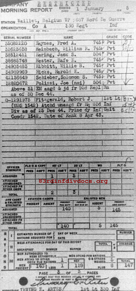 | 1945-01-01 | PVT | Assigned and joined from 92nd Replacement Battalion as of December 30, 1944 | 745 | A / 330 | view page |