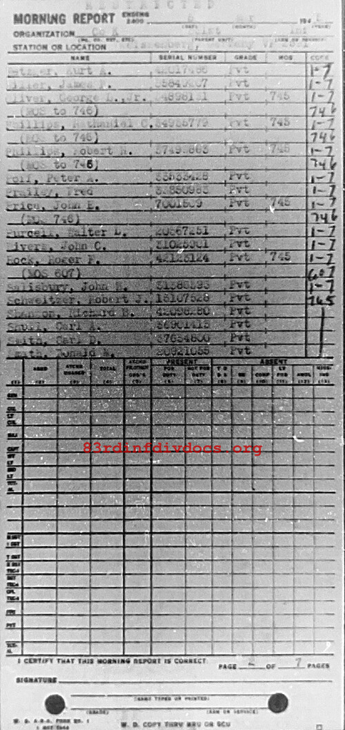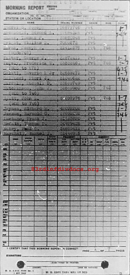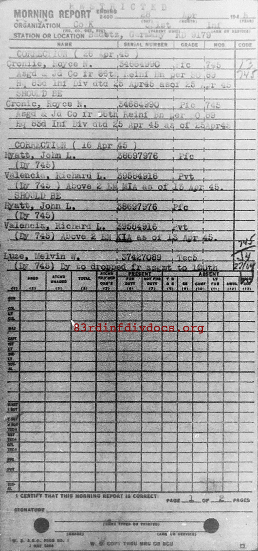 | 1945-04-28 | PFC | Killed in action on April 13, 1945, which corrects MR of April 16, 1945 | 745 | K / 331 | view page |