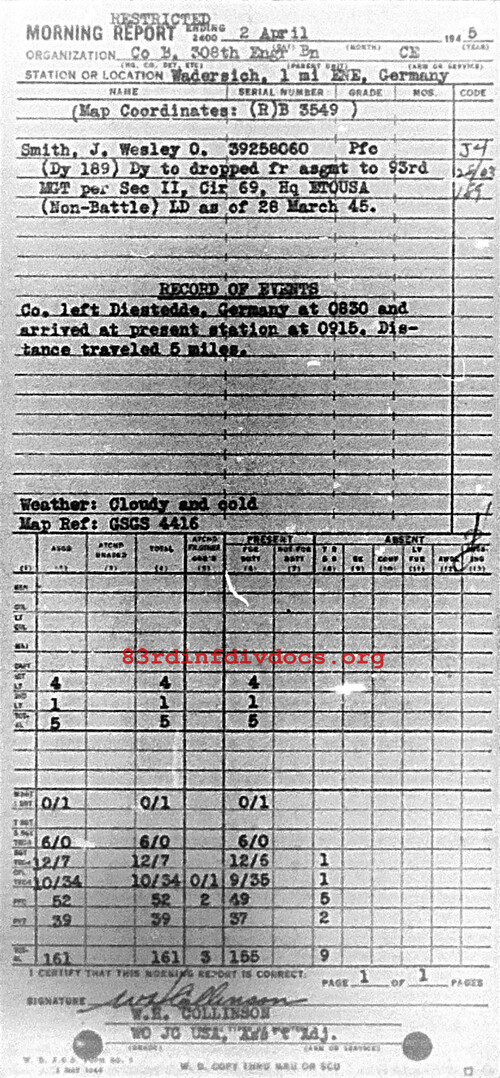| Unit | B Company, 308th Engineer Combat Battalion, 83rd Infantry Division |