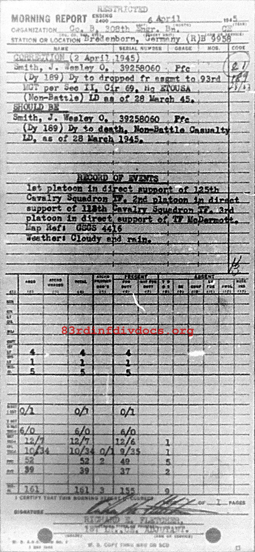 | 1945-04-06 | PFC | Deceased as of March 28, 1945, which corrects MR of April 6, 1945 | 189 | B / 308E | view page |
