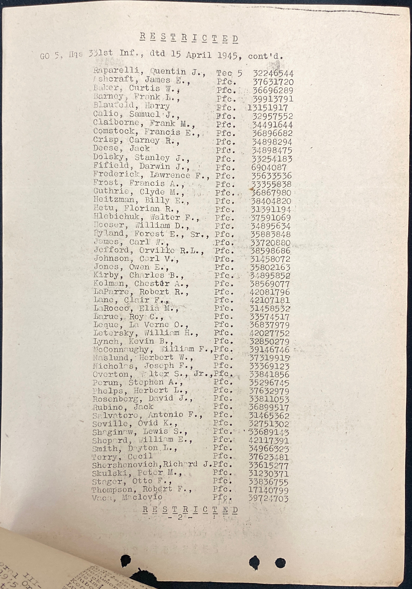 | 331 / 1945 / #2 | PFC |
