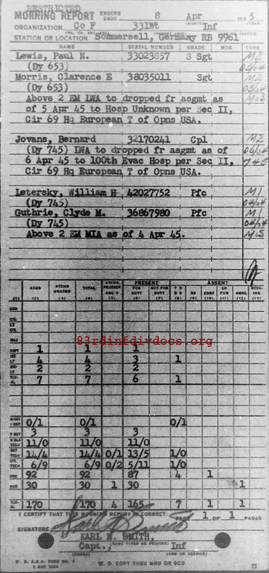 | Unit | F Company, 331st Infantry Regiment, 83rd Infantry Division |