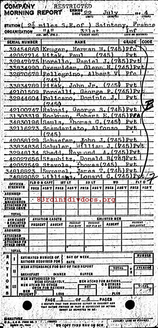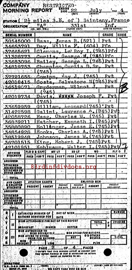 | 1944-07-22 | PVT | Assigned and joined from 48th Replacement Battalion as of July 20, 1944 | 745 | A / 331 | view page |