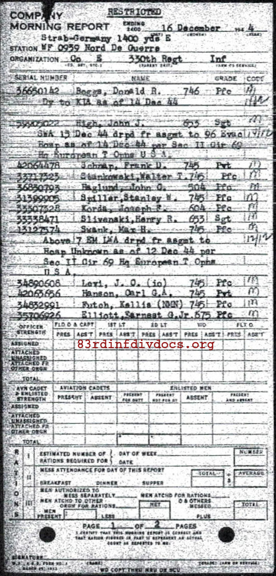 | 1944-12-16 | PVT | Missing in action as of December 10, 1944 | 745 | E / 330 | view page |