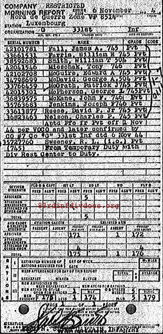 | 1944-11-06 | PVT | Promoted to Private First Class as of November 1, 1944 | 745 | G / 331 | view page |