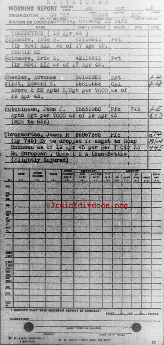 Killed in action on April 17, 1945, which corrects MR of April 19, 1945 |