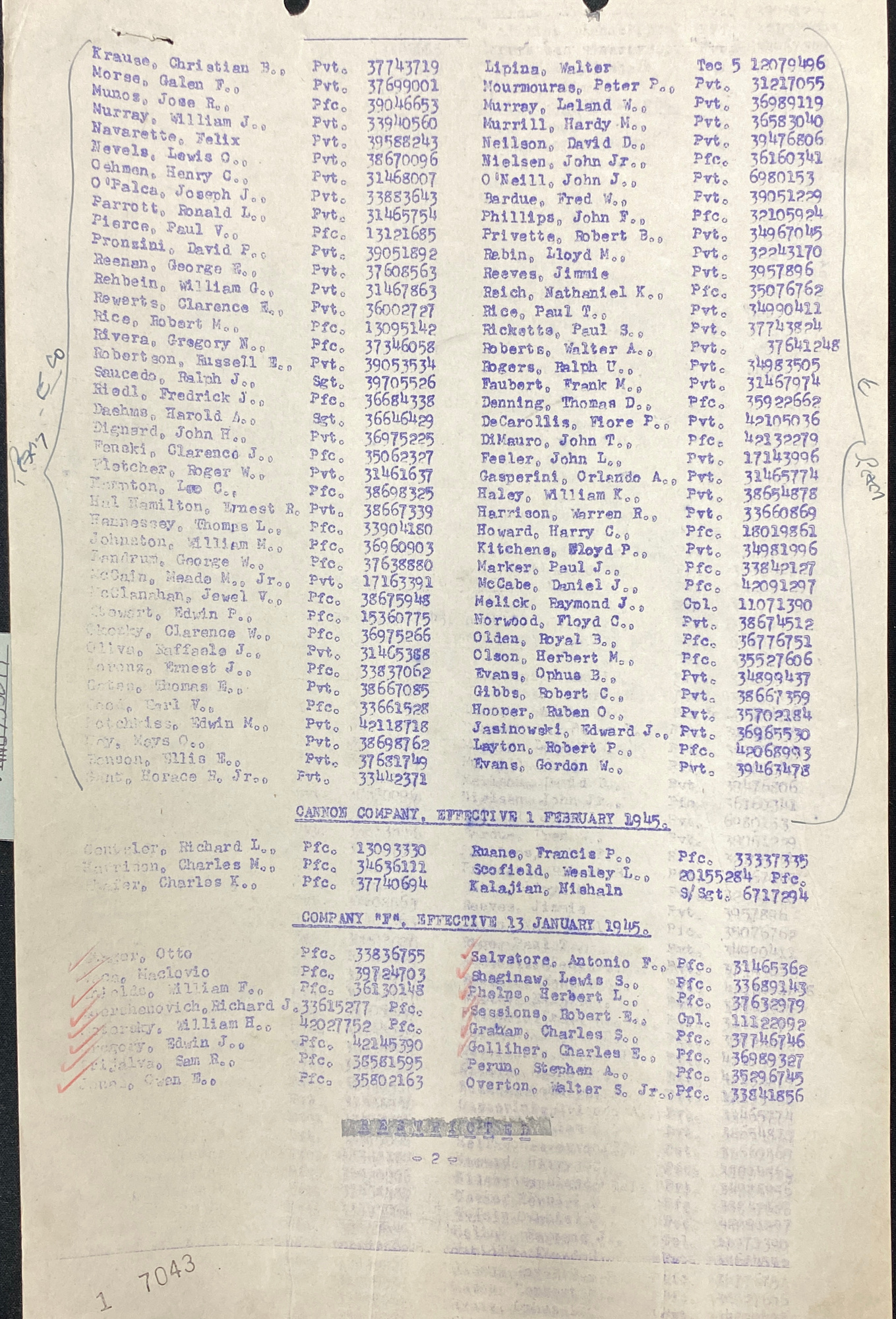 | 1945-04-08 | PFC | Killed in action on January 13, 1945, which corrects MR of January 19, 1945 | 745 | E / 331 | view page |