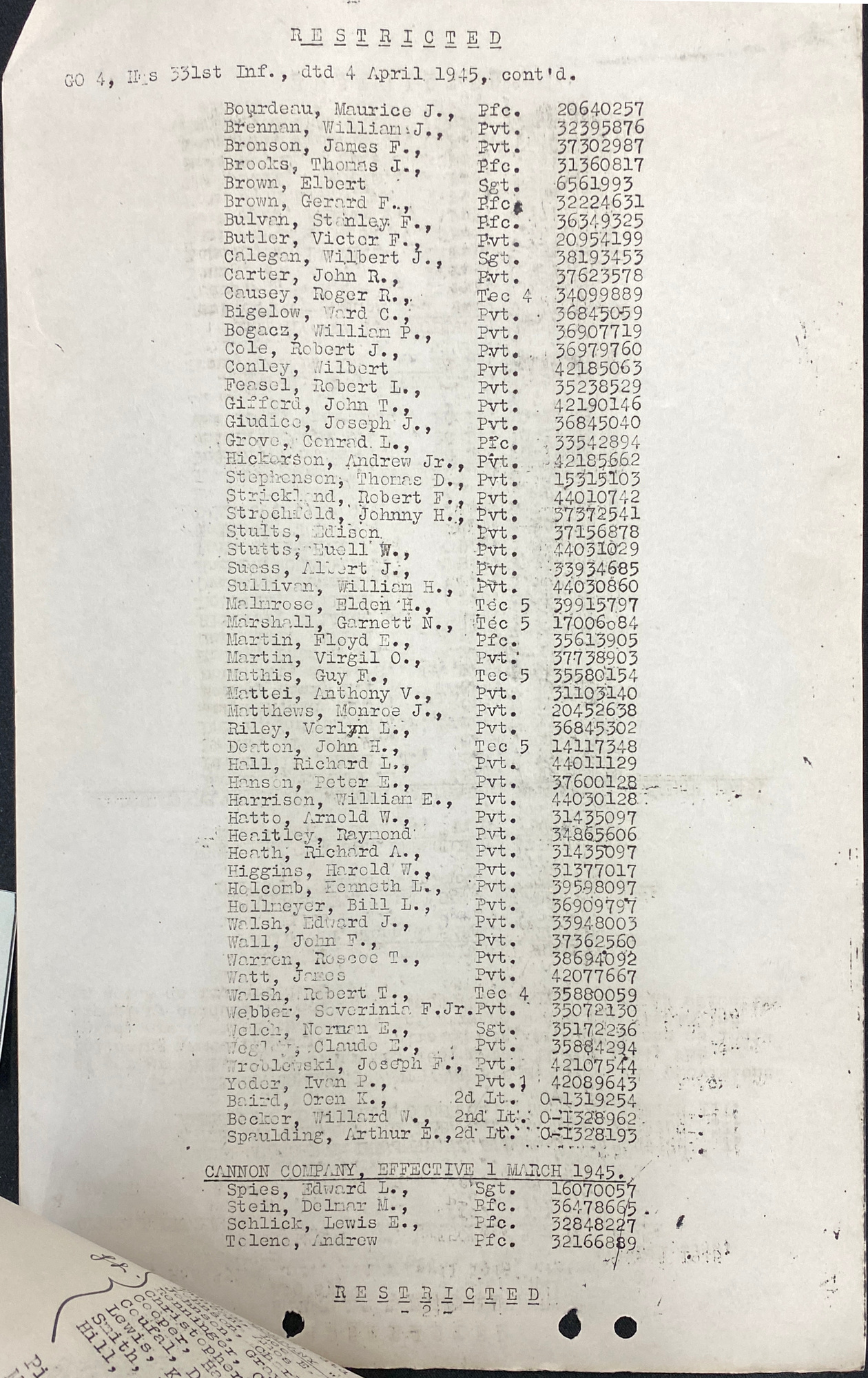 | 1945-04-01 | PVT | Promoted to Private First Class as of April 1, 1945 | 745 | G / 331 | view page |