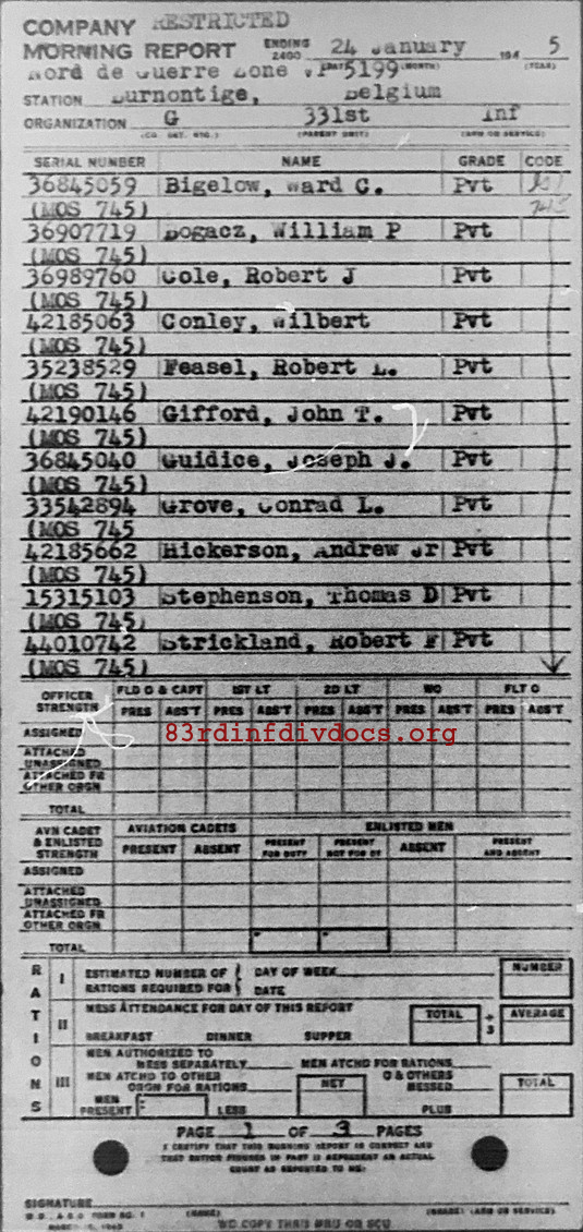 | Unit | G Company, 331st Infantry Regiment, 83rd Infantry Division |