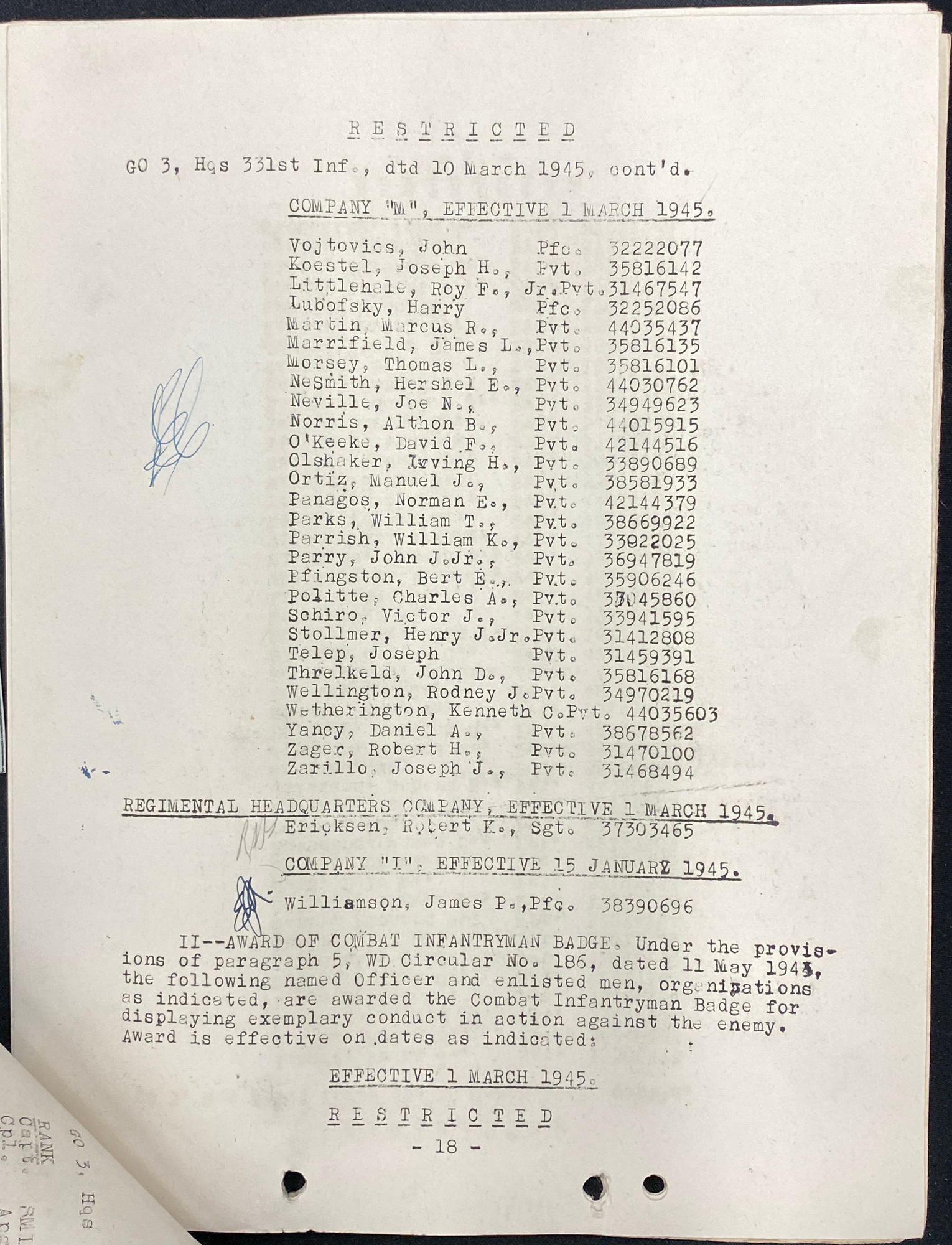 | 1945-03-21 | PVT | Promoted to Private First Class as of March 21, 1945 | M / 331 | view page | |