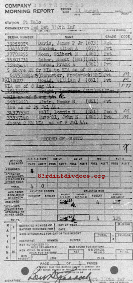 | Unit | 330th Infantry Regiment, 83rd Infantry Division |
