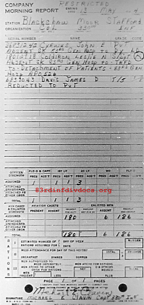 | 1944-05-01 | TEC5 | Absent without official leave as of as of 2400, May 1, 1944 | L / 330 | view page | |
