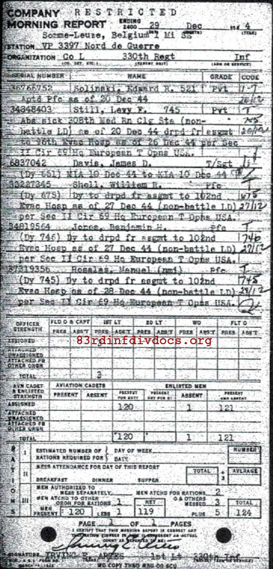 | Unit | 330th Infantry Regiment, 83rd Infantry Division |