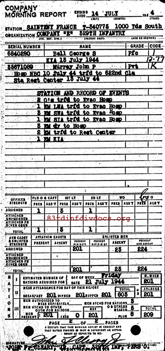 | 1944-07-17 | PFC | Killed in action on July 13, 1944 | E / 329 | view page | |