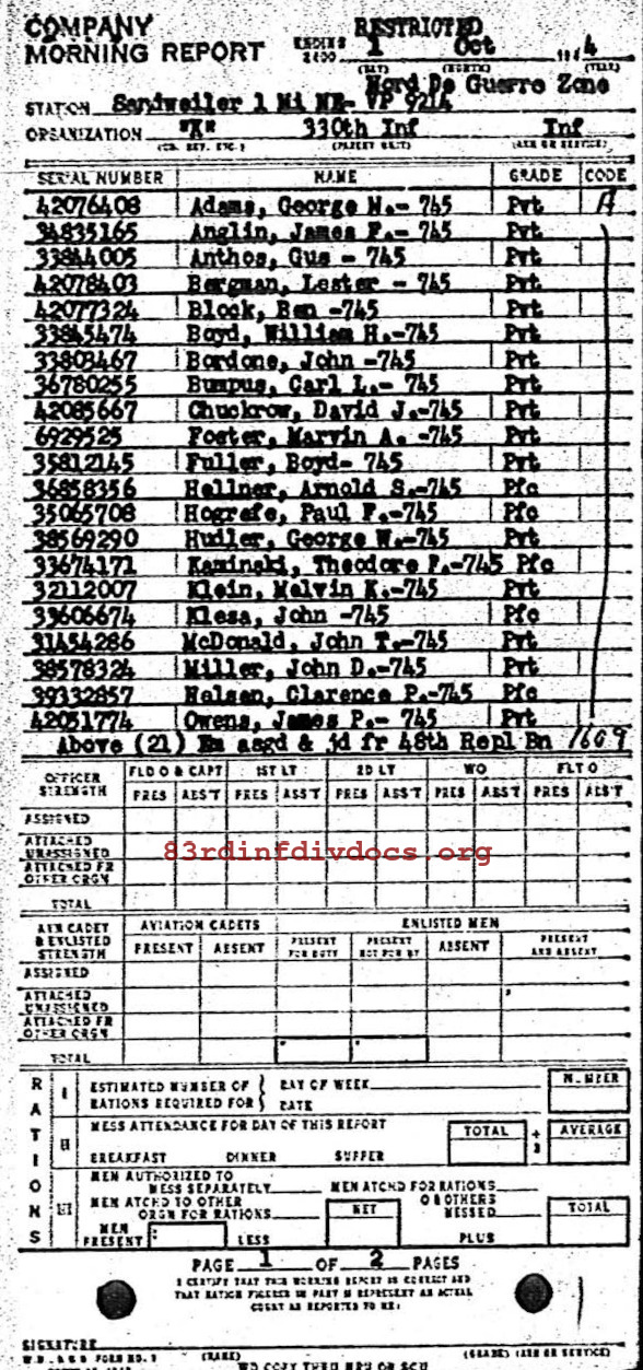| 1944-10-01 | PVT | Assigned and joined from 48th Replacement Battalion as of September 16, 1944 | 745 | K / 330 | view page |