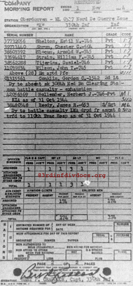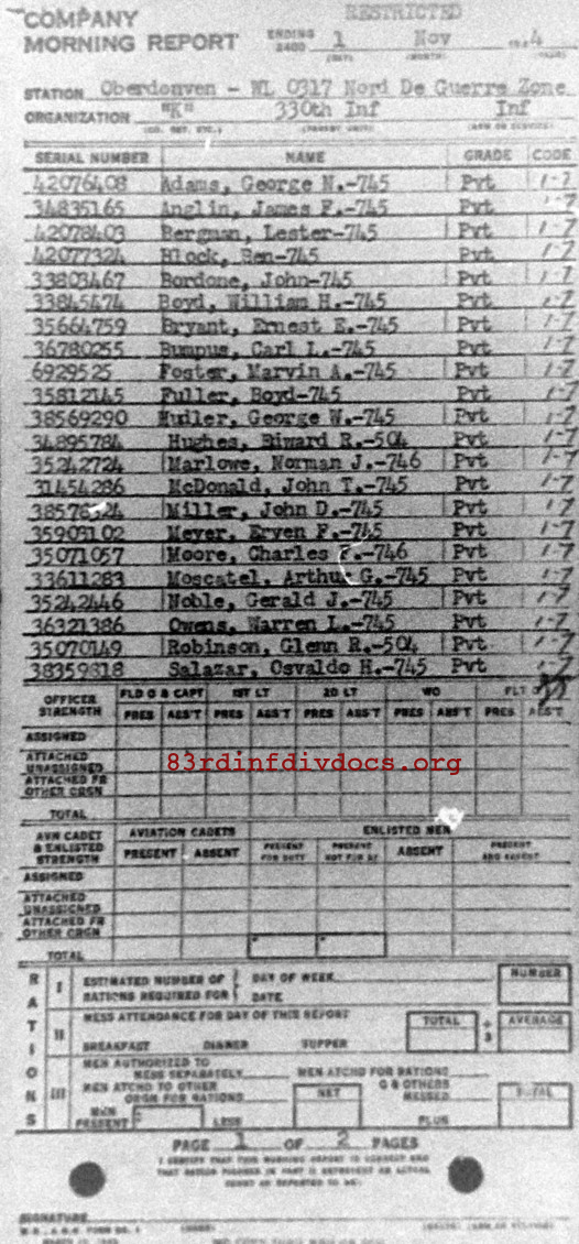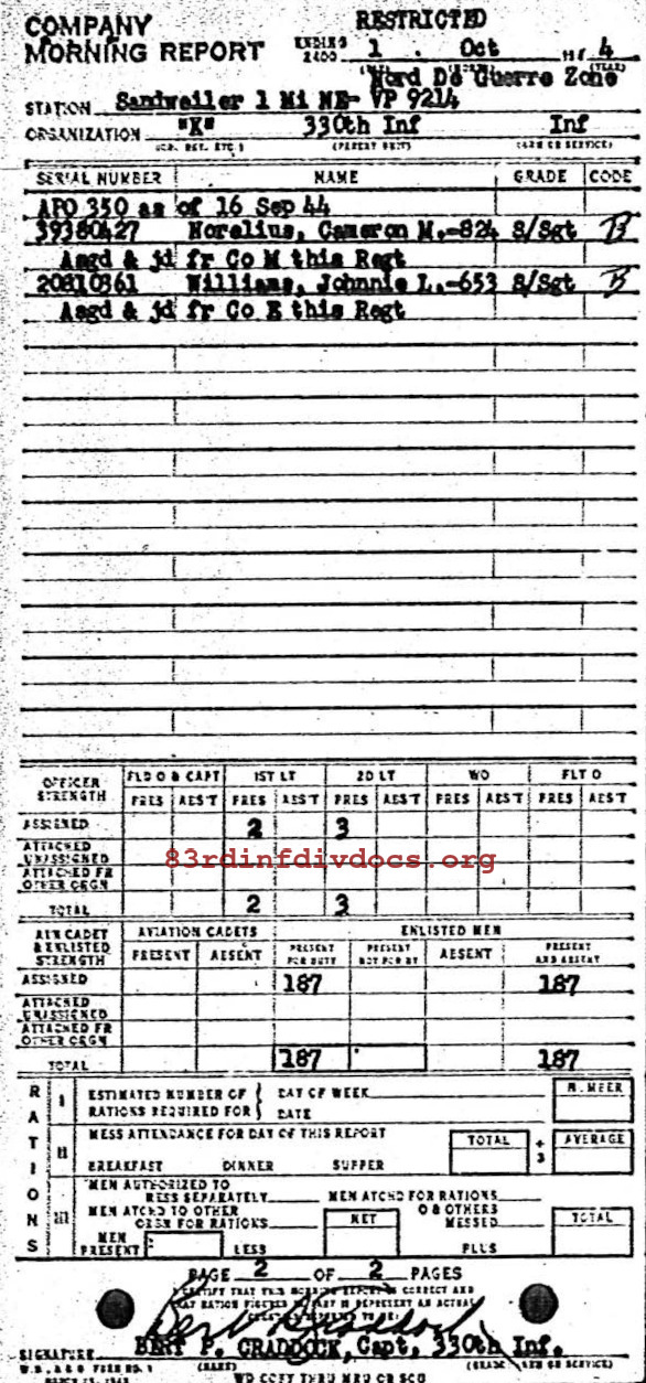 | Unit | K Company, 330th Infantry Regiment, 83rd Infantry Division |