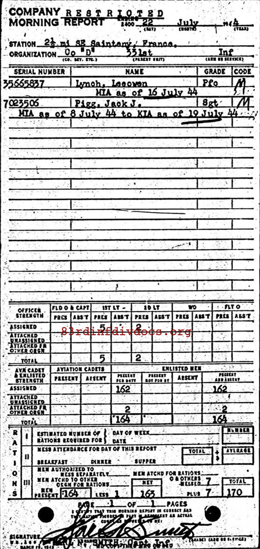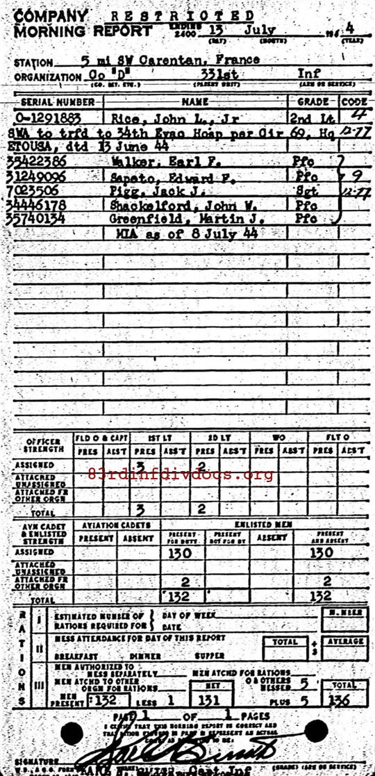 | According to page 48 of the memoirs of Capt. Harry C. Gravelyn, Co. D, 331st: