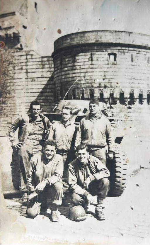 | The picture shows 1LT Duca in front of Recon-3, usually the replacement vehicle assigned to the Maintenance Section of the Troop HQ, at Chateau des Ducs de Bretagne in Nantes where the unit was attached to the 330th in August and September of 1944. Photos courtesy of Jean Paas |