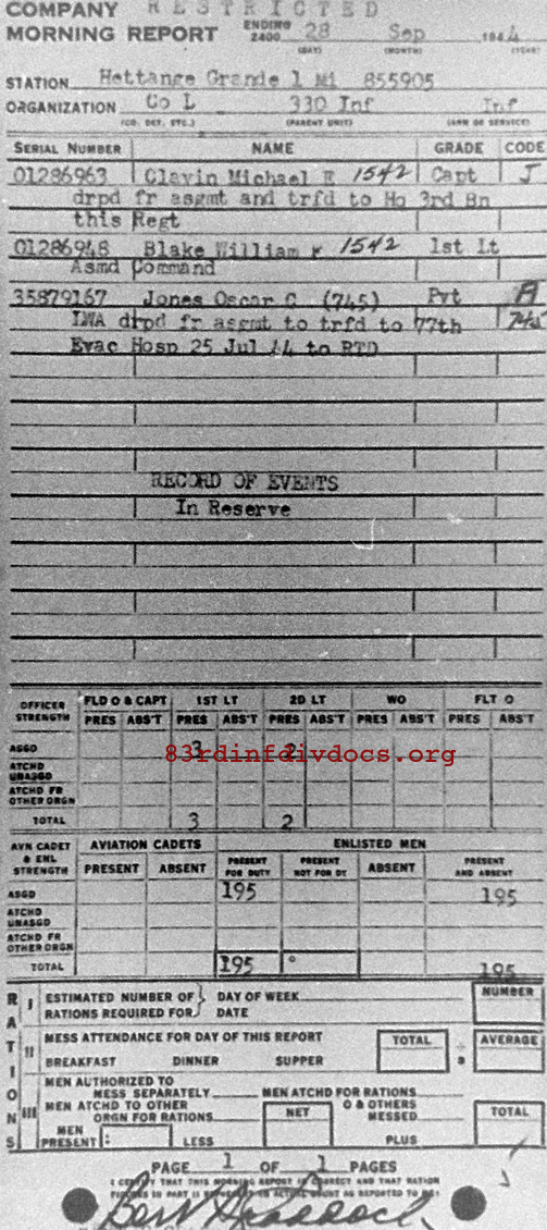 | 1944-09-28 | 1LT | Assumed command as of September 28, 1944 | 1542 | L / 330 | view page |