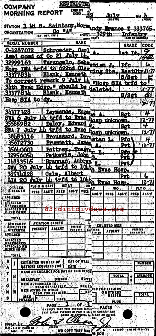 | 1944-07-23 | 1LT | Entry in morning report of July 22, 1944 is erroneous | 0001 | A / 329 | view page |