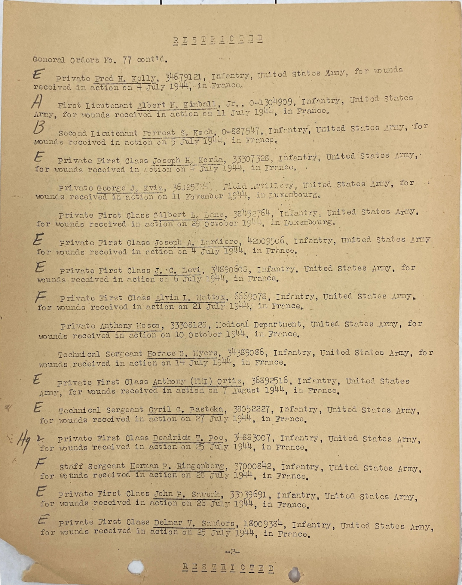 | Listed in 330th Infantry Regiment Casualties and Awards as wounded in action as a First Lieutenant in 330. | 19 | ||||