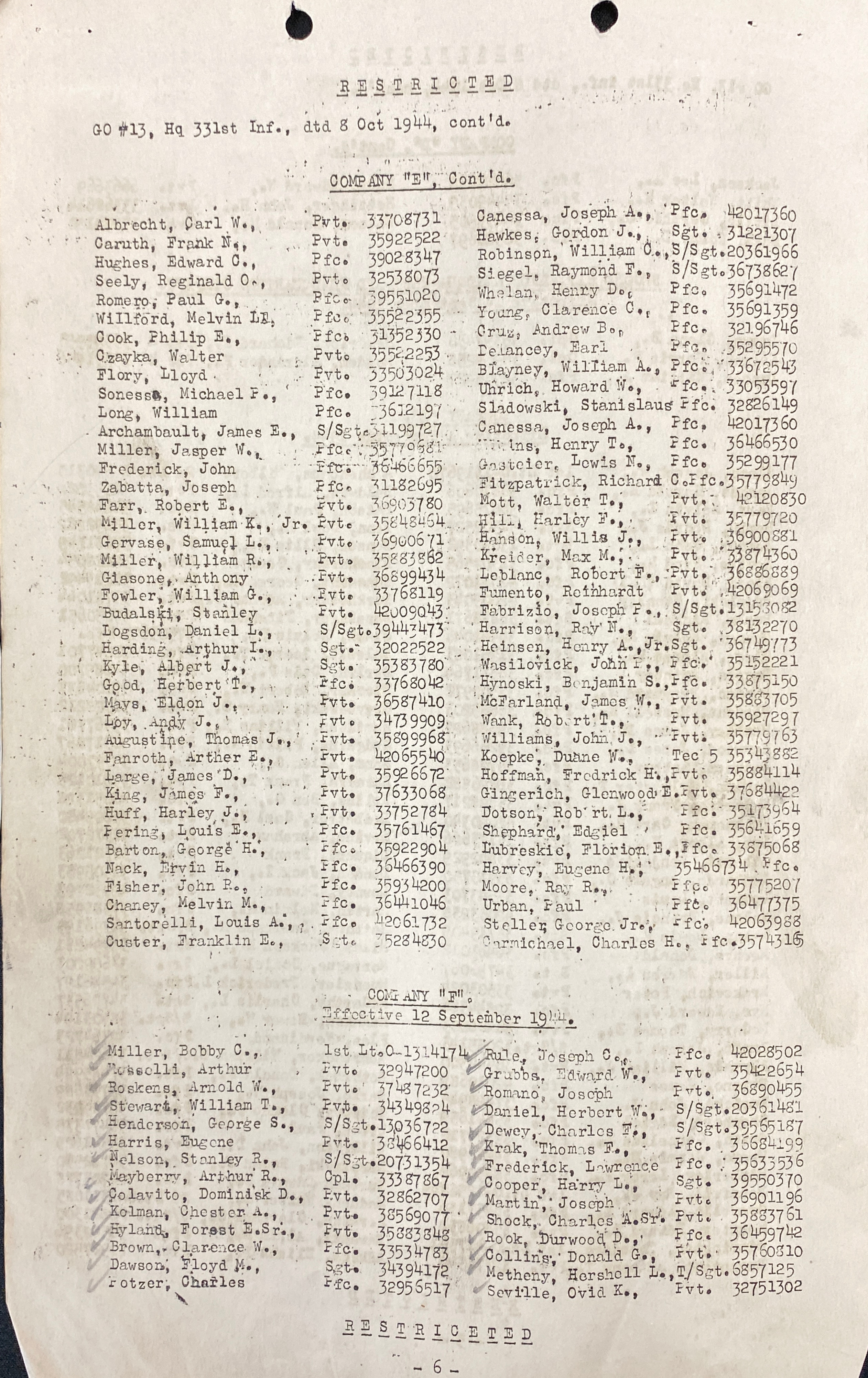 | Unit | F Company, 331st Infantry Regiment, 83rd Infantry Division |