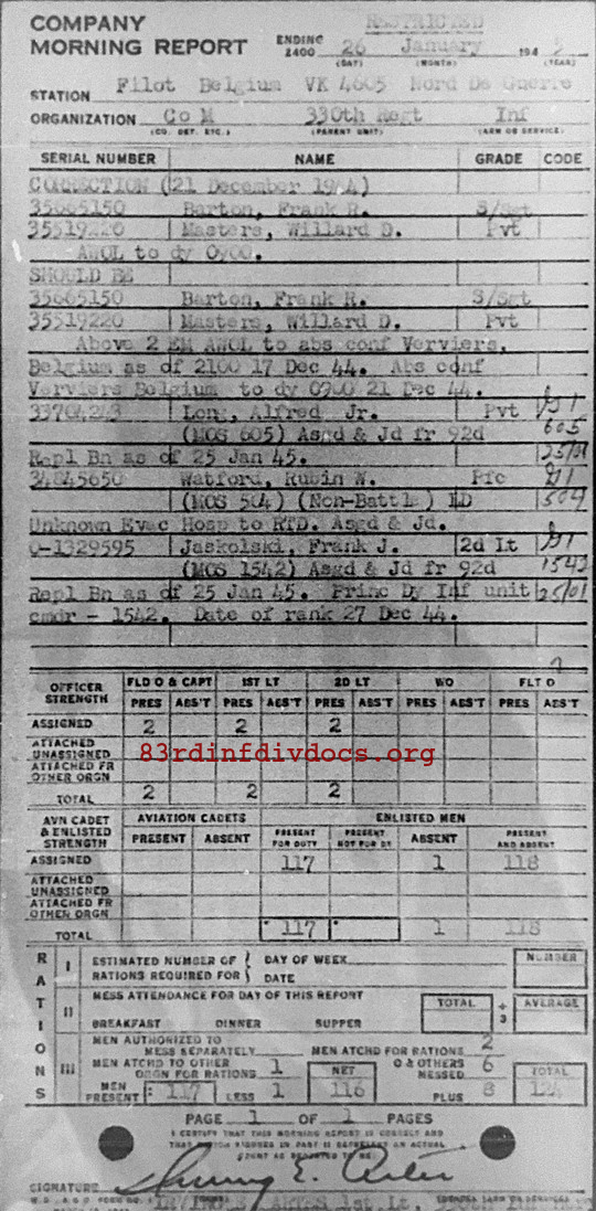 | Unit | M Company, 330th Infantry Regiment, 83rd Infantry Division |