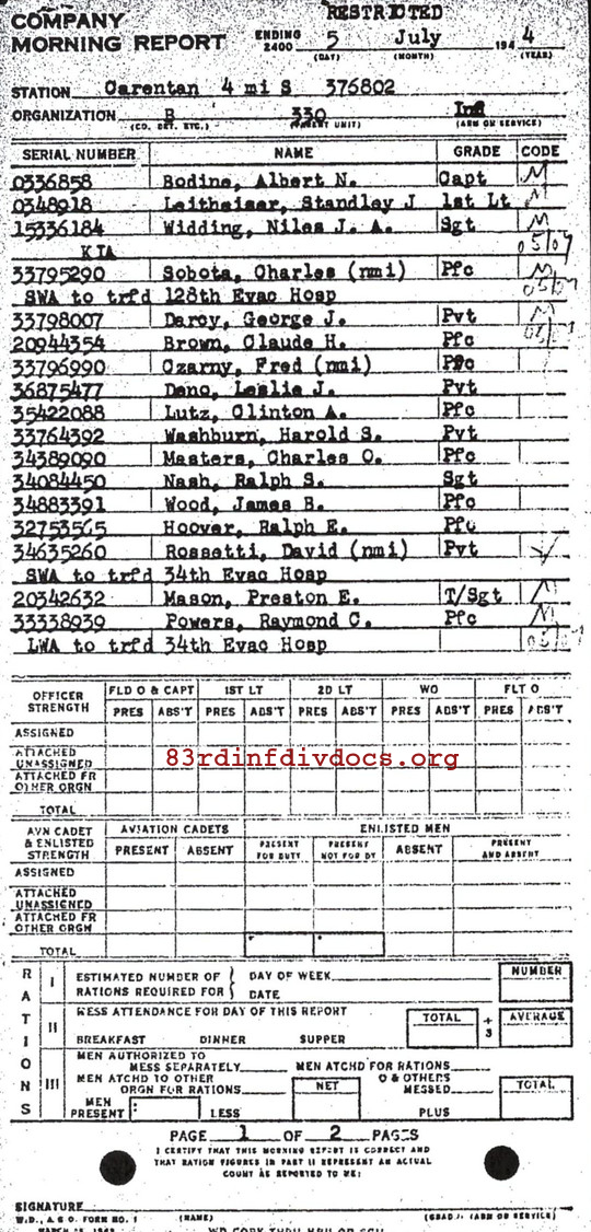 | Unit | B Company, 330th Infantry Regiment, 83rd Infantry Division |