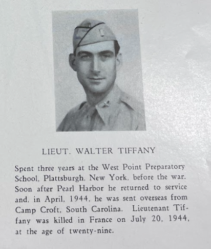 | First Lieutenant Tiffany was a member of M Company. The morning report for July 24, 1944 on pages 41 and 42, for July 24, 1944, lists him as Missing in Action as of July 20, 1944. The pages can be seen below. The 331st Casualty Report (page 3, #99) for 1944 also lists 1Lt. Tiffany as member of M Co. |